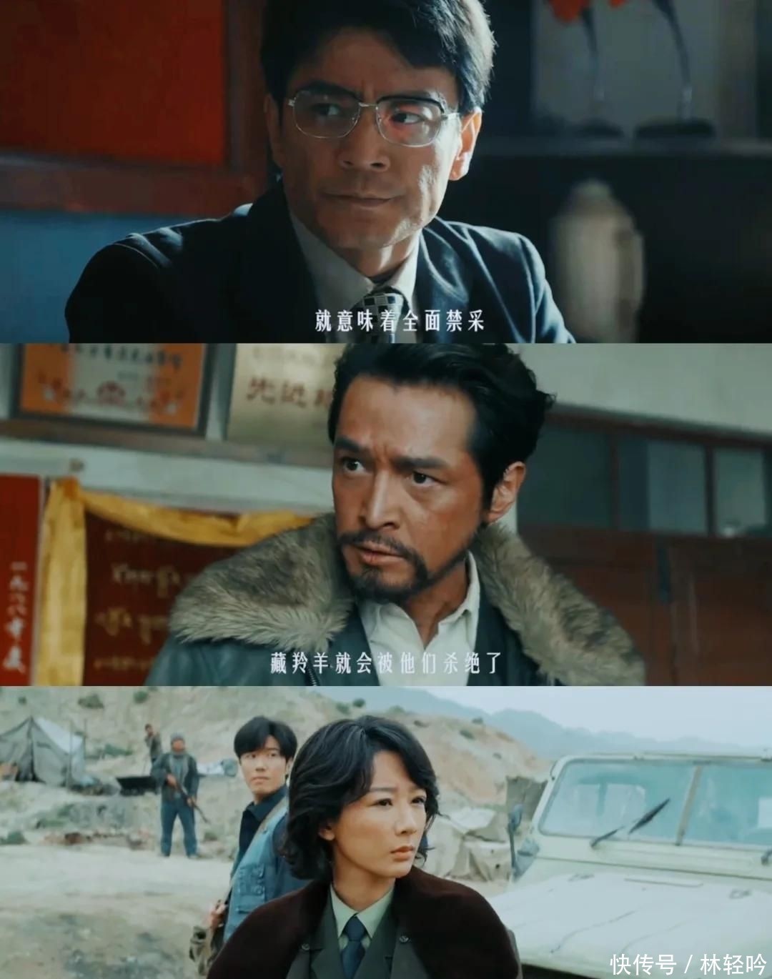 有一场戏令我久久难忘:她在废弃哨所外发现一具被剥皮的藏羚羊幼崽尸体,泪水在眼眶里急速打旋,喉头剧烈起伏,却死死咬住下唇不让它落下——那一瞬的克制与痛楚,让我后颈汗毛直立,呼吸都滞了一拍。