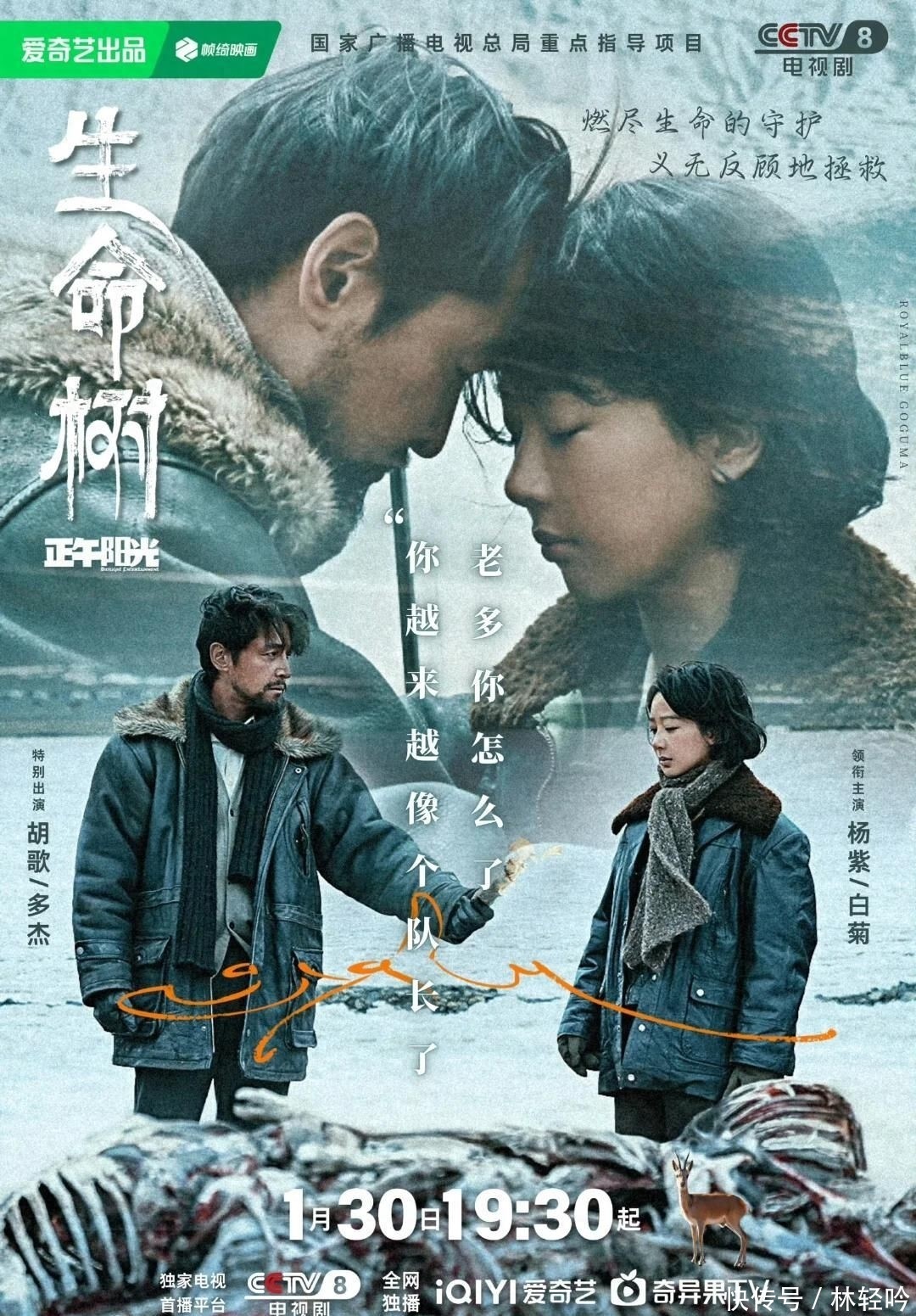 杨紫过往角色常带着青春跃动的气息,而胡歌近年则不断向纵深掘进——这次在《生命树》中饰演扎根高原十余载的反盗猎先锋,仅预告片里他裹着旧棉帽、睫毛结霜、指节冻裂却仍紧握望远镜的模样,就与当年意气风发的梅长苏判若两人。