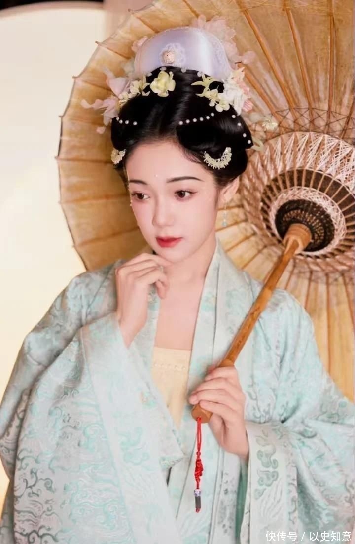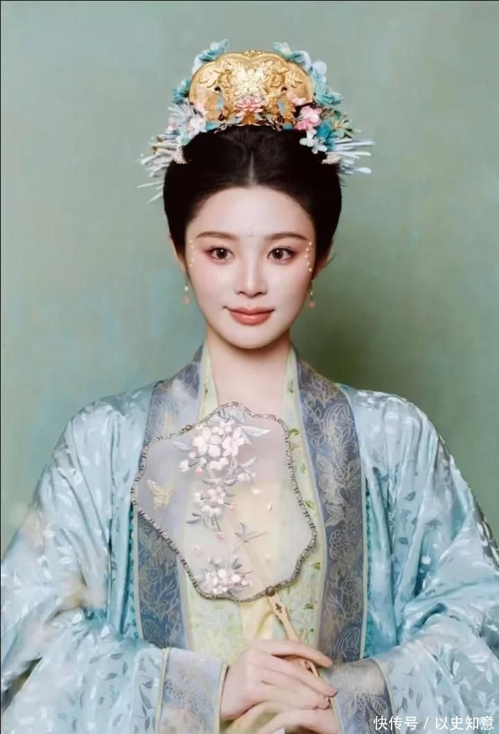 希林娜依高选择水蓝色对襟褙子配玛瑙簪饰,利落短发与飒爽神情相映成趣,将宋代女性刚柔并济的精神风貌诠释得入木三分。