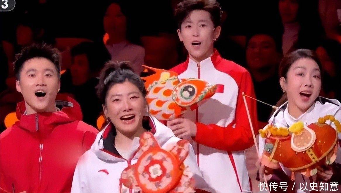 徐梦桃、范可新、隋文静、王心迪四位奥运冠军身着藏蓝运动套装登台,参与开场歌舞《元宵正好》及趣味互动游戏。