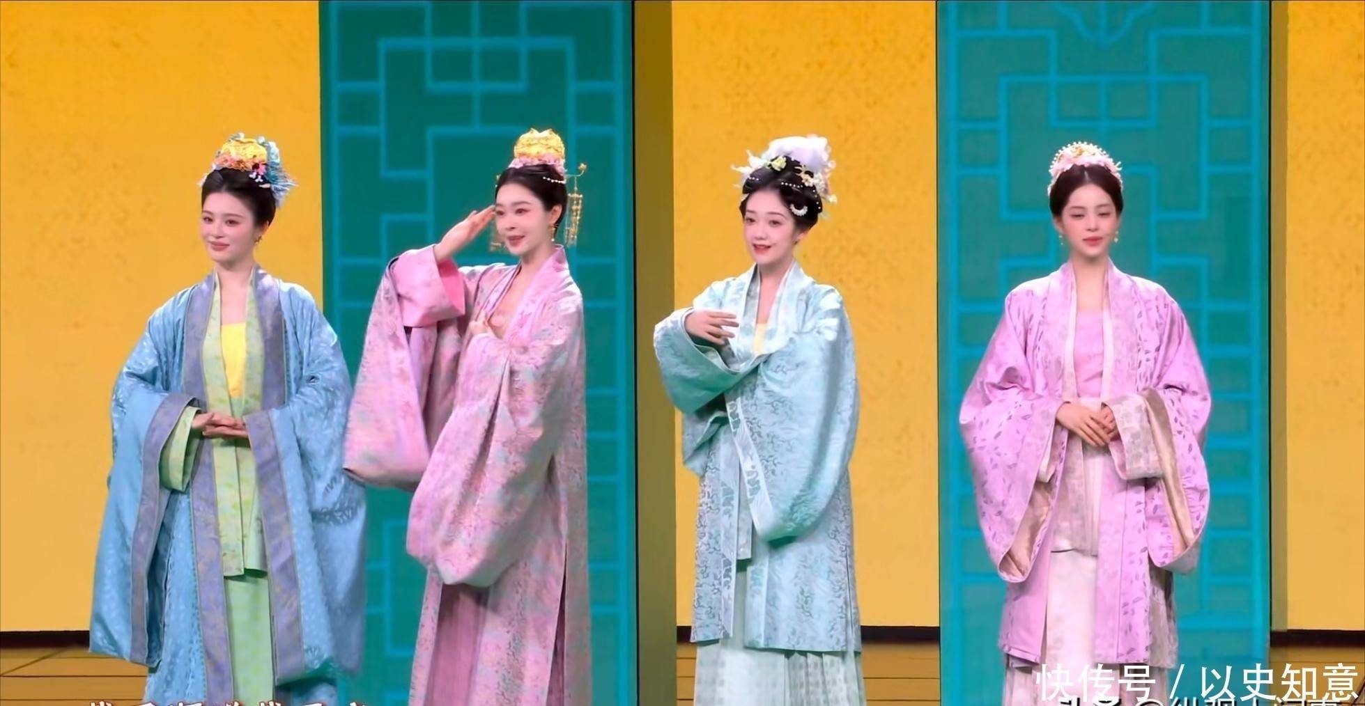 不过当四人同框定格时,部分观众注意到欧阳娜娜的襦裙版型略显宽松,视觉上削弱了身形延展性,被网友委婉评价为“萌感满分,形制稍逊”。