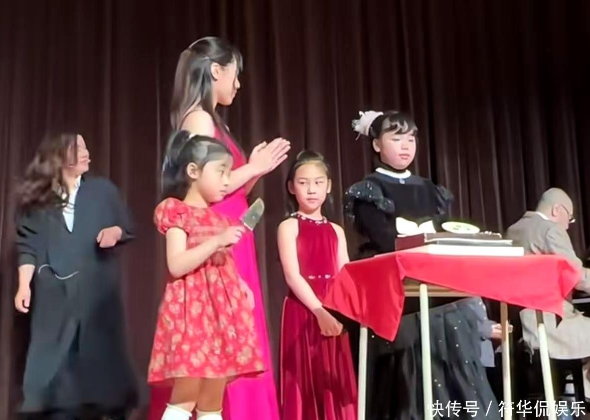 他们的女儿贝贝今年5岁,已经是个小明星了。 年初踏足国际舞台,在英语音乐剧里演主角小哪吒。 刘诗昆夫妇一心想把她培养成钢琴家,从小就带着她到处演出,创造各种舞台机会。 这娃也争气,面对镜头一点都不怯场,生日会上拿着切蛋糕的刀等爸爸弹完钢琴,那定力绝了。